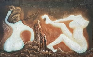 Angela Sparks, 2016, Destitute, Oil on Recycled Timber Panel, 20cm x 40cm, SOLD